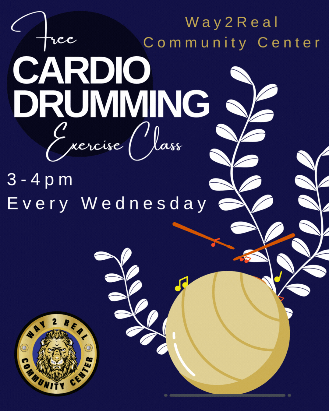 Every Wednesday at 3pm there is a FREE Cardio Drumming Exercise Class offered at Way2Real Community Center. This uplifting exercise is easy on the joints while still getting your heart PUMPING!