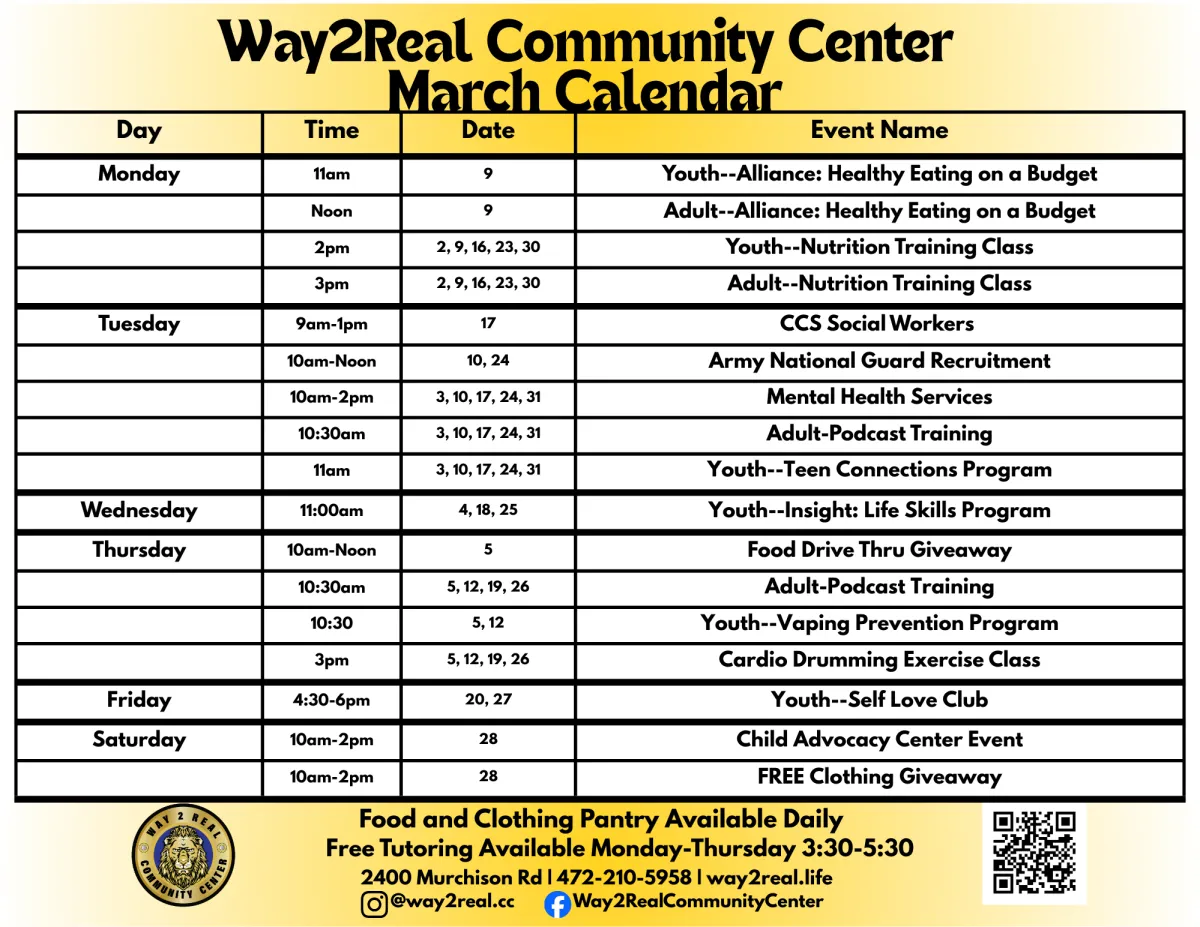 Way2Real offers many free programs for adults, families, and youth in the Fayetteville Community.